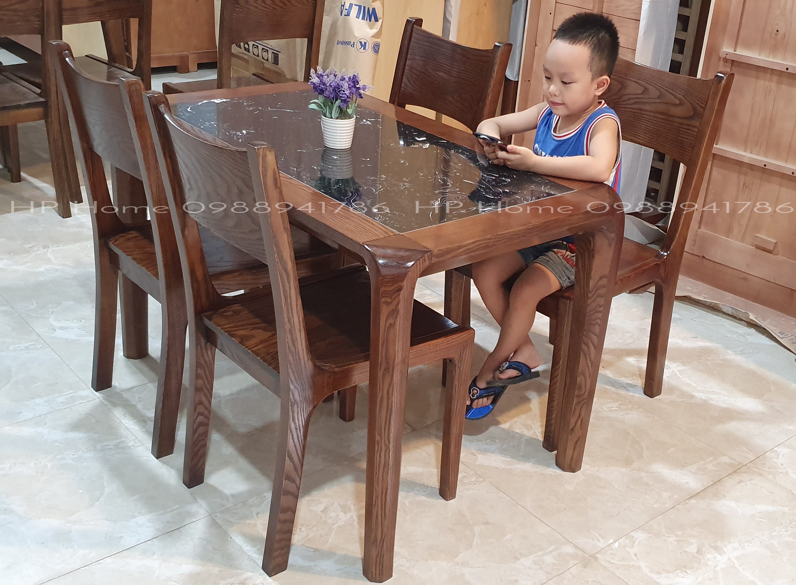 Bàn ăn 4 ghế tai voi sơn màu óc chó ( kèm đá )