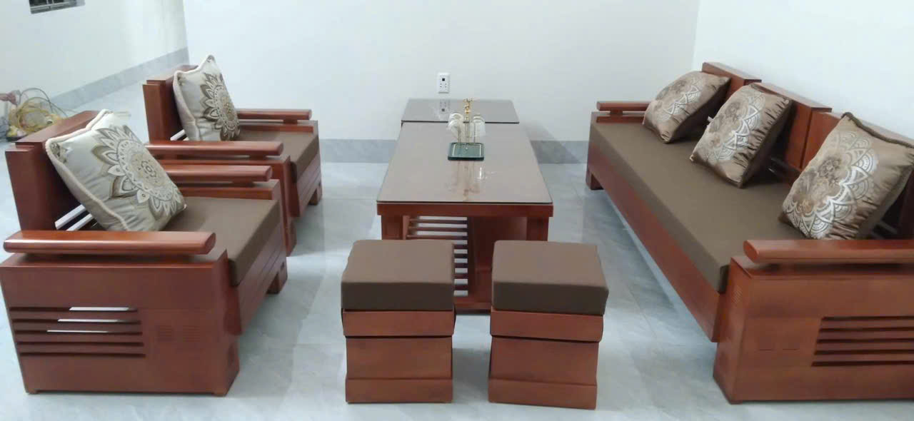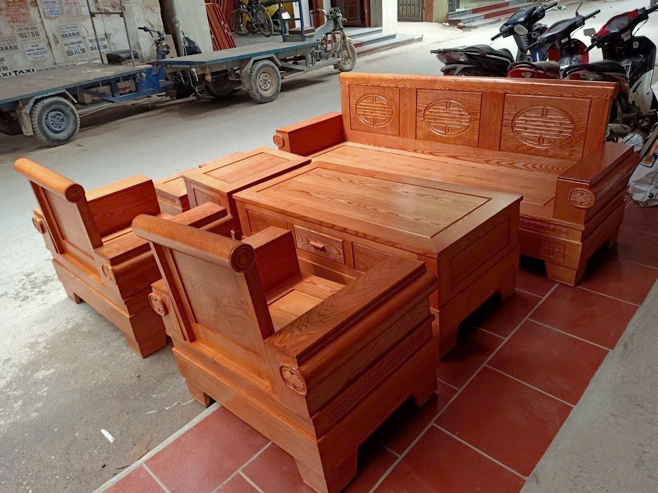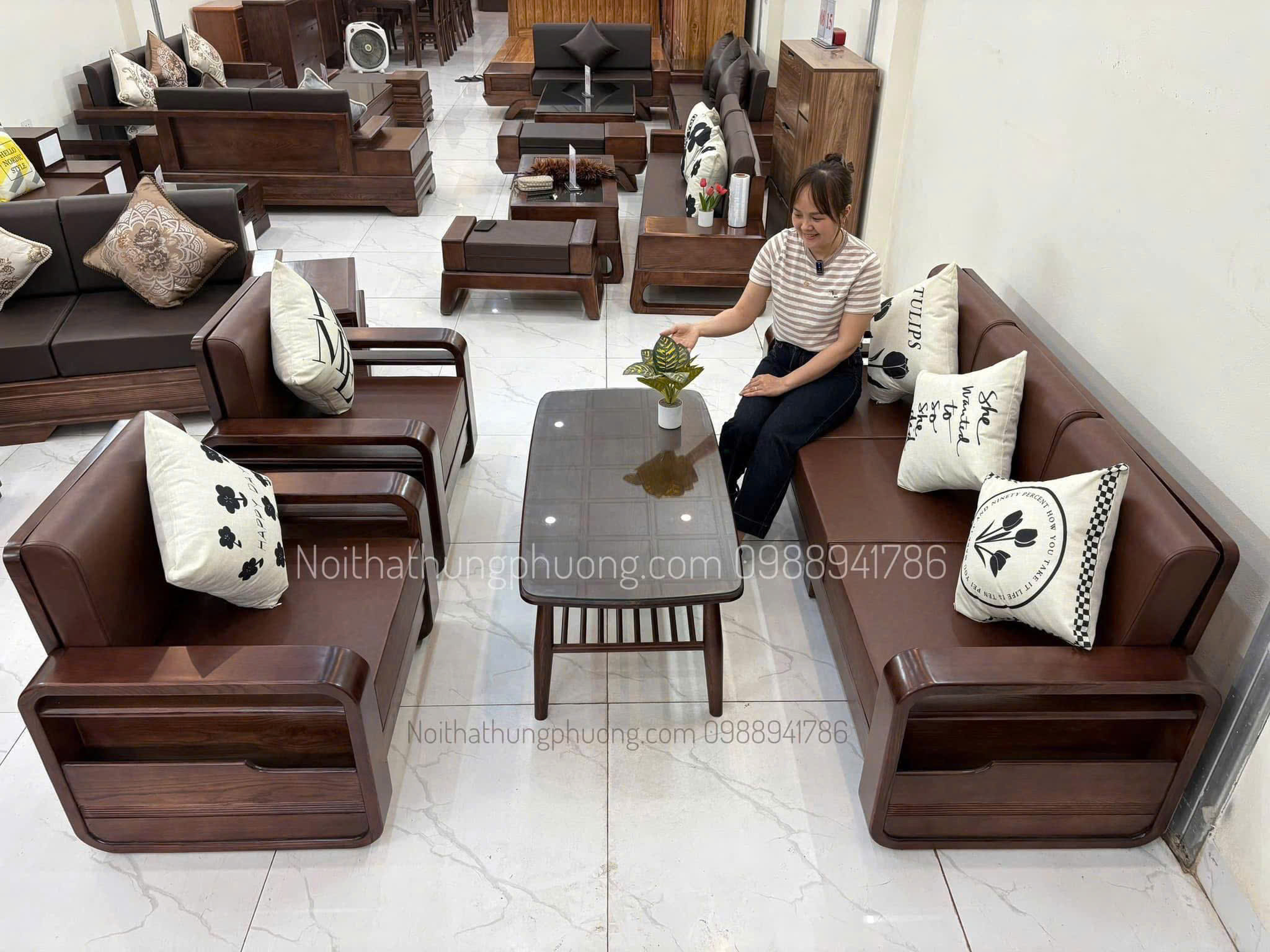Sofa đối trứng 7 chi tiết sơn màu cánh gián ( kèm đệm gối )