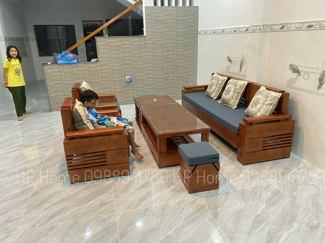 Sofa đối gỗ xoan đào kèm đệm+ gối da