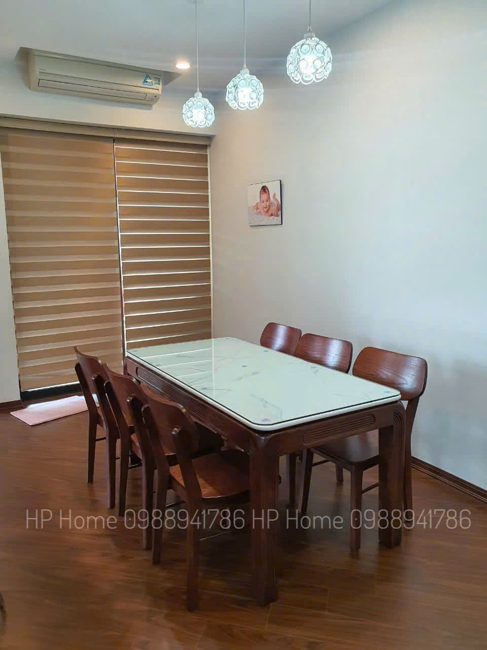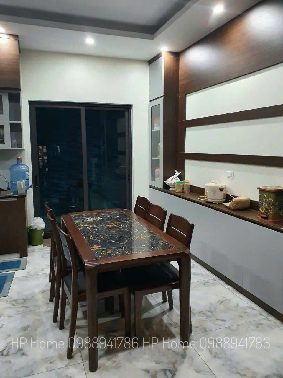 Bàn ăn 6 ghế bàn đá trắng + kính