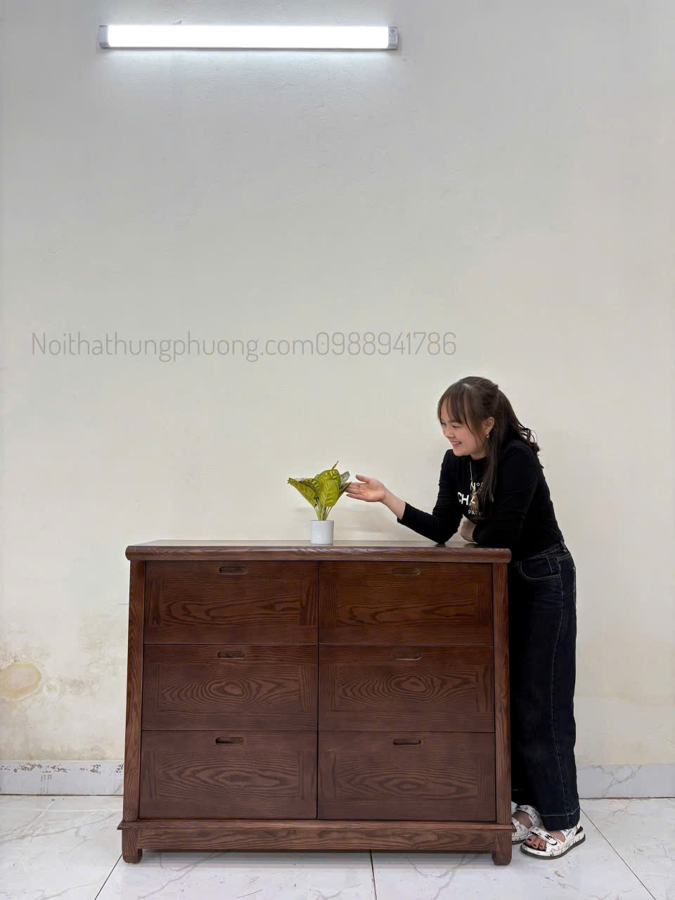 Tủ đa năng 6 ngăn kéo gỗ sồi sơn óc chó